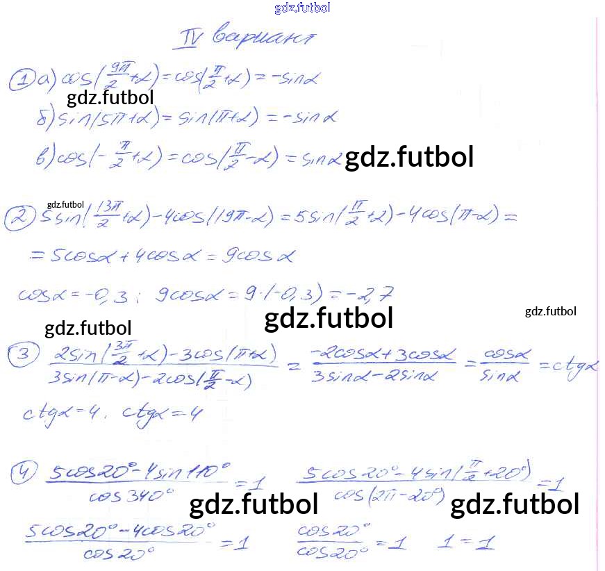 Готовые домашние задания по Алгебре за 9 класс Потапов Дидактические материалы МГУ - школе 2010 ФГОС - СР №27. Формулы приведения для синуса и косинуса вариант 4