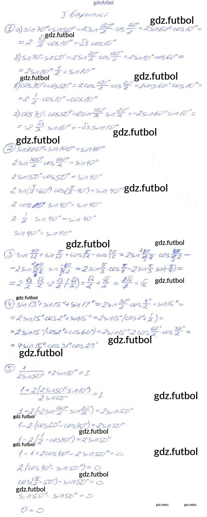Готовые домашние задания по Алгебре за 9 класс Потапов Дидактические материалы МГУ - школе 2010 ФГОС - СР №28. Сумма и разность синусов и косинусов вариант 1