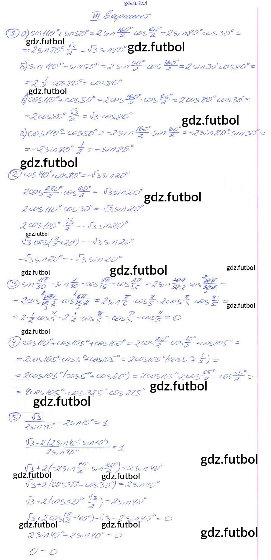 Готовые домашние задания по Алгебре за 9 класс Потапов Дидактические материалы МГУ - школе 2010 ФГОС - СР №28. Сумма и разность синусов и косинусов вариант 3