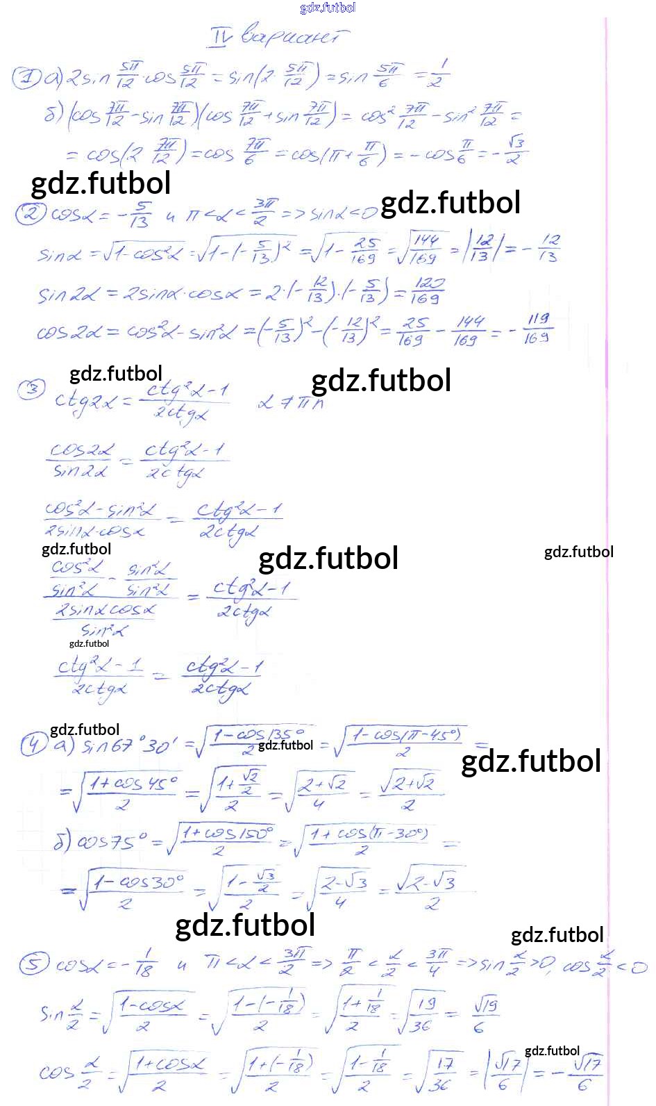 Готовые домашние задания по Алгебре за 9 класс Потапов Дидактические материалы МГУ - школе 2010 ФГОС - СР №29. Формулы для двойных и половинных углов вариант 4