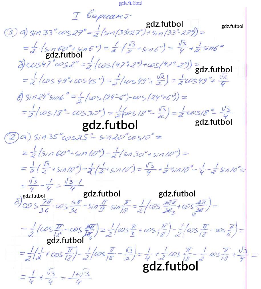 Готовые домашние задания по Алгебре за 9 класс Потапов Дидактические материалы МГУ - школе 2010 ФГОС - СР №30. Произведения синусов и косинусов вариант 1