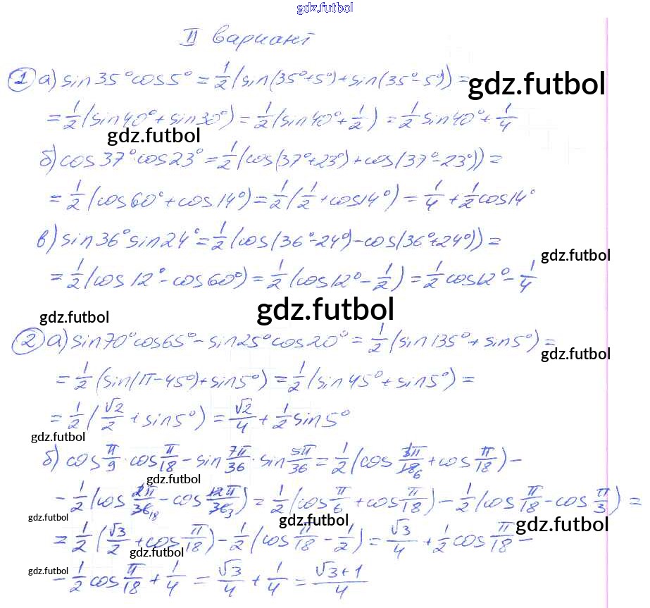 Готовые домашние задания по Алгебре за 9 класс Потапов Дидактические материалы МГУ - школе 2010 ФГОС - СР №30. Произведения синусов и косинусов вариант 2