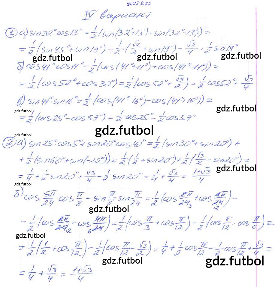 Готовые домашние задания по Алгебре за 9 класс Потапов Дидактические материалы МГУ - школе 2010 ФГОС - СР №30. Произведения синусов и косинусов вариант 4