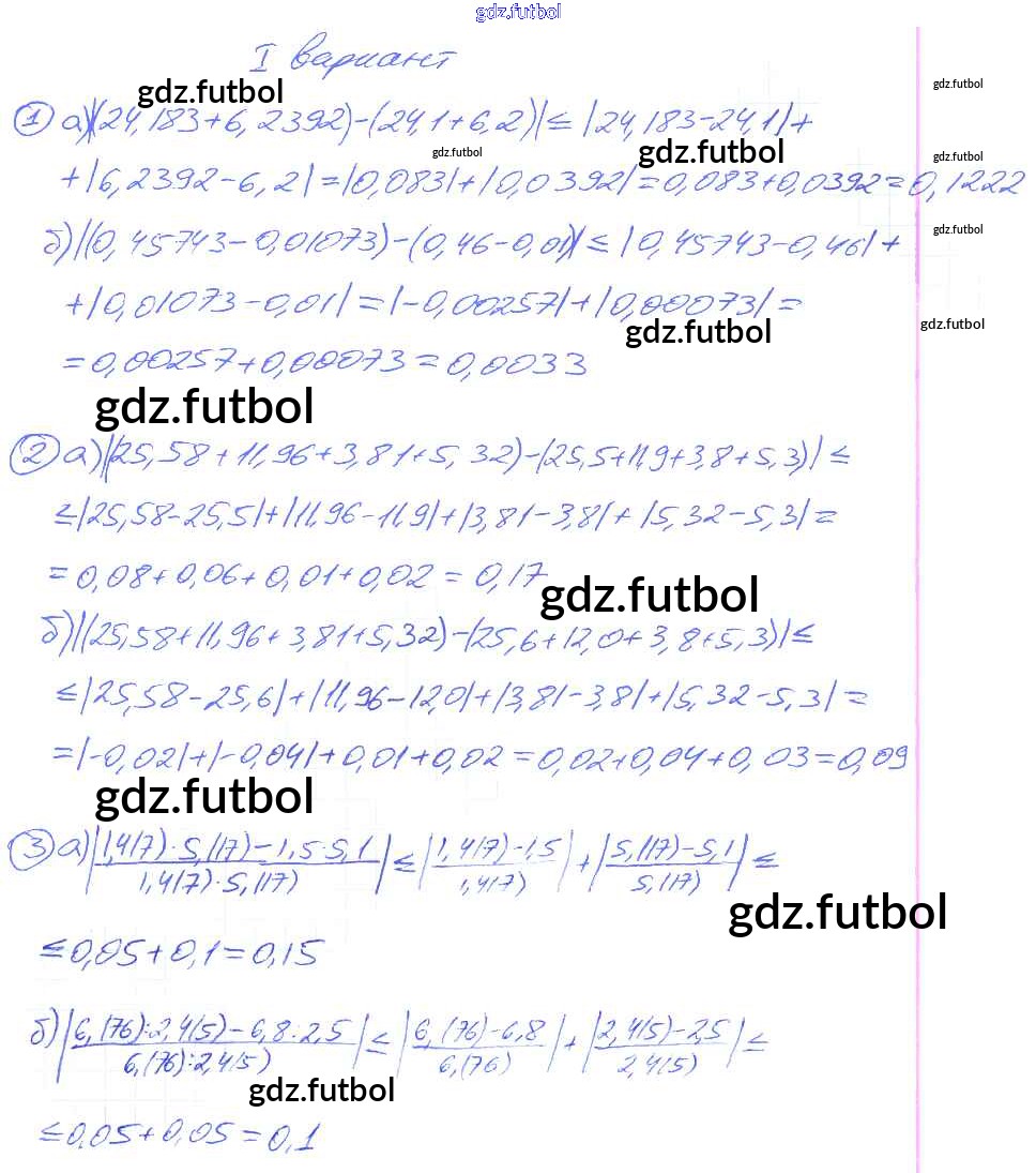 Готовые домашние задания по Алгебре за 9 класс Потапов Дидактические материалы МГУ - школе 2010 ФГОС - СР №32. Приближения суммы, разности, произведения и частного чисел вариант 1