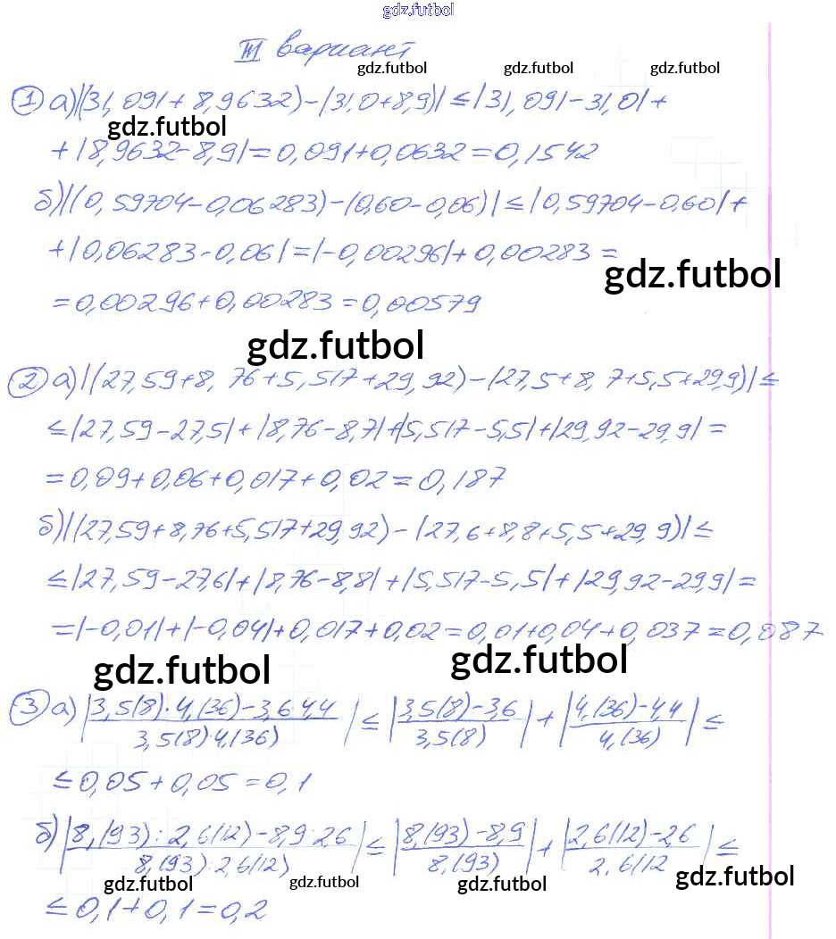 Готовые домашние задания по Алгебре за 9 класс Потапов Дидактические материалы МГУ - школе 2010 ФГОС - СР №32. Приближения суммы, разности, произведения и частного чисел вариант 3