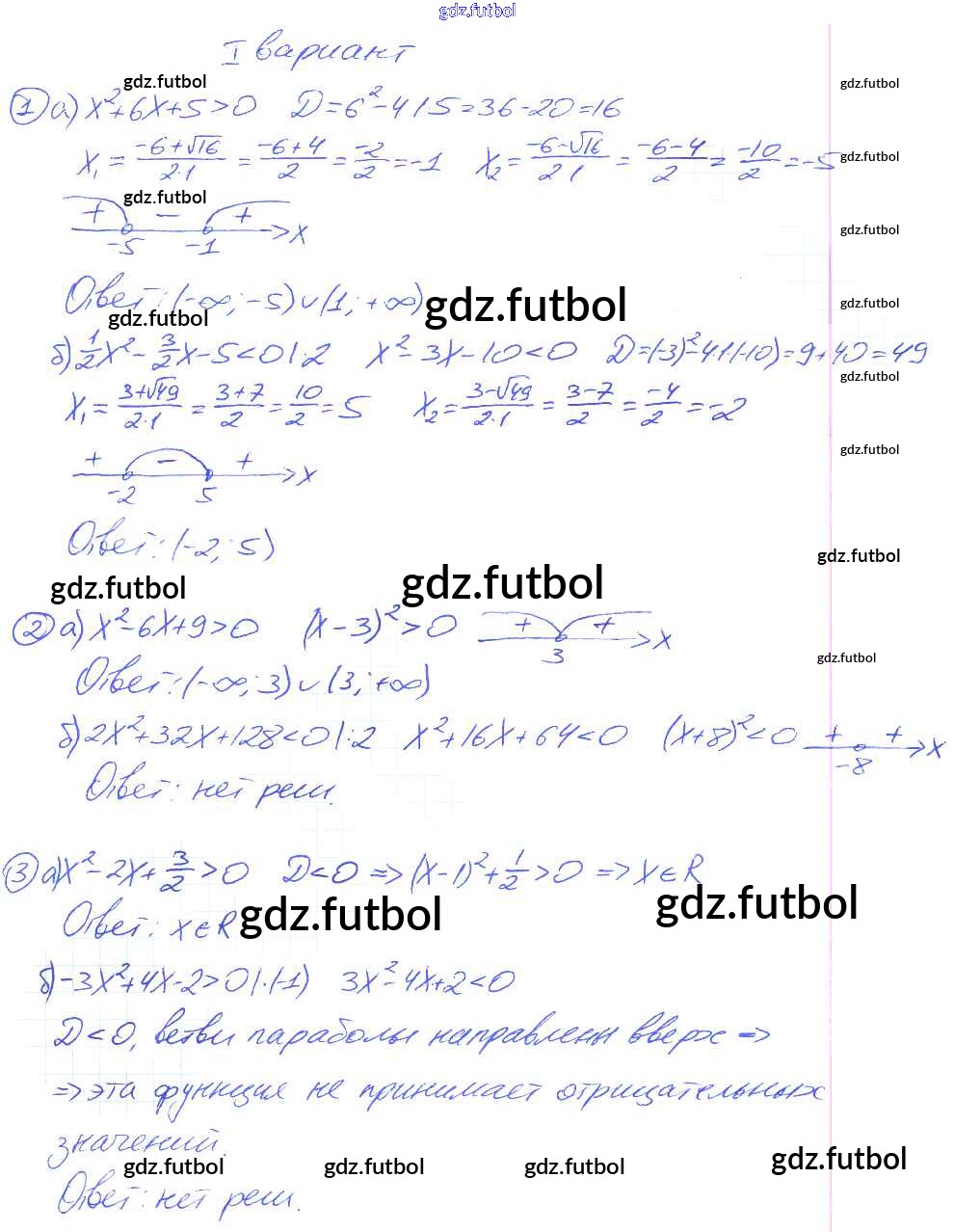 Готовые домашние задания по Алгебре за 9 класс Потапов Дидактические материалы МГУ - школе 2010 ФГОС - СР №5. Неравенства второй степени вариант 1