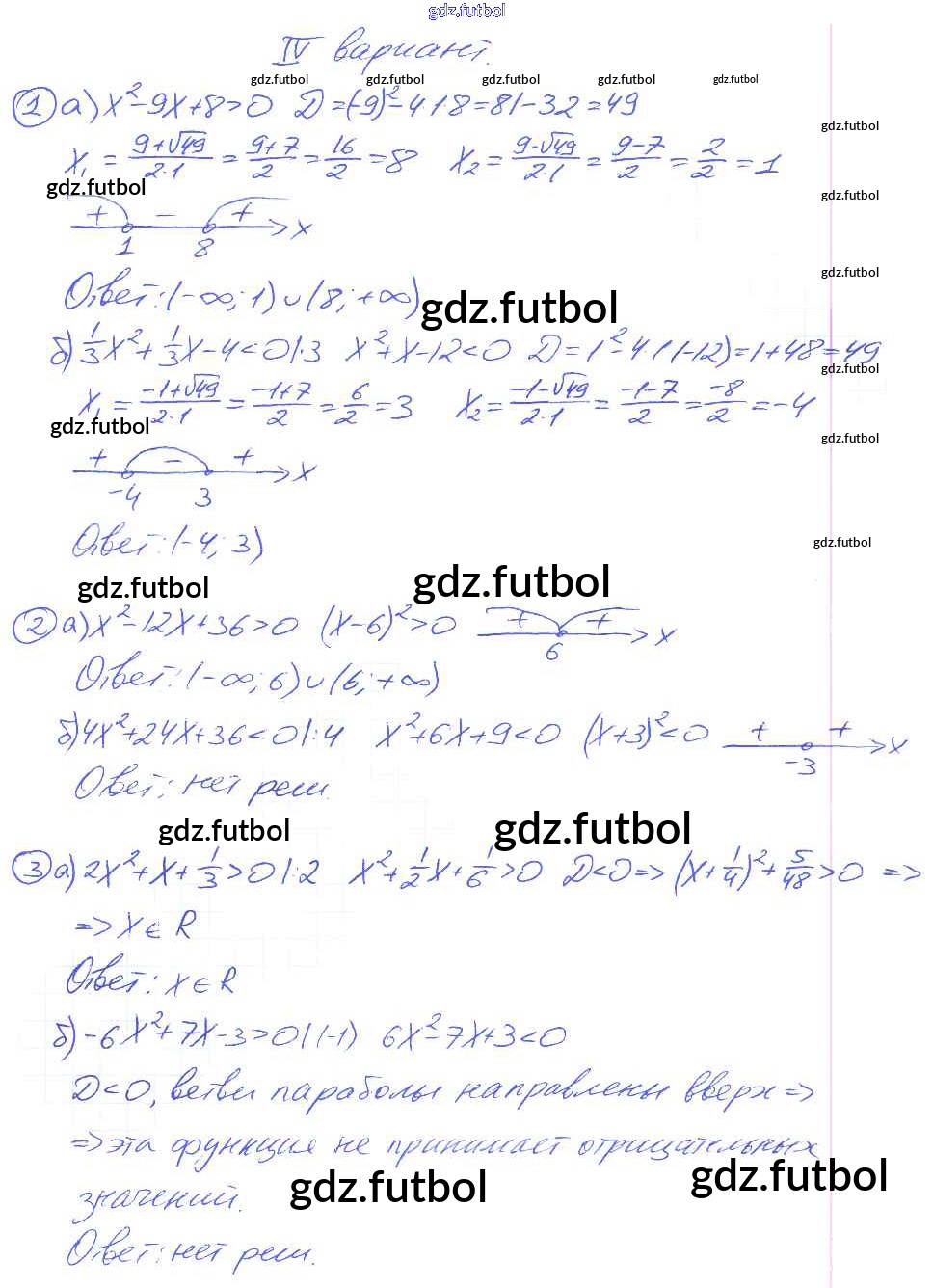 Готовые домашние задания по Алгебре за 9 класс Потапов Дидактические материалы МГУ - школе 2010 ФГОС - СР №5. Неравенства второй степени вариант 4