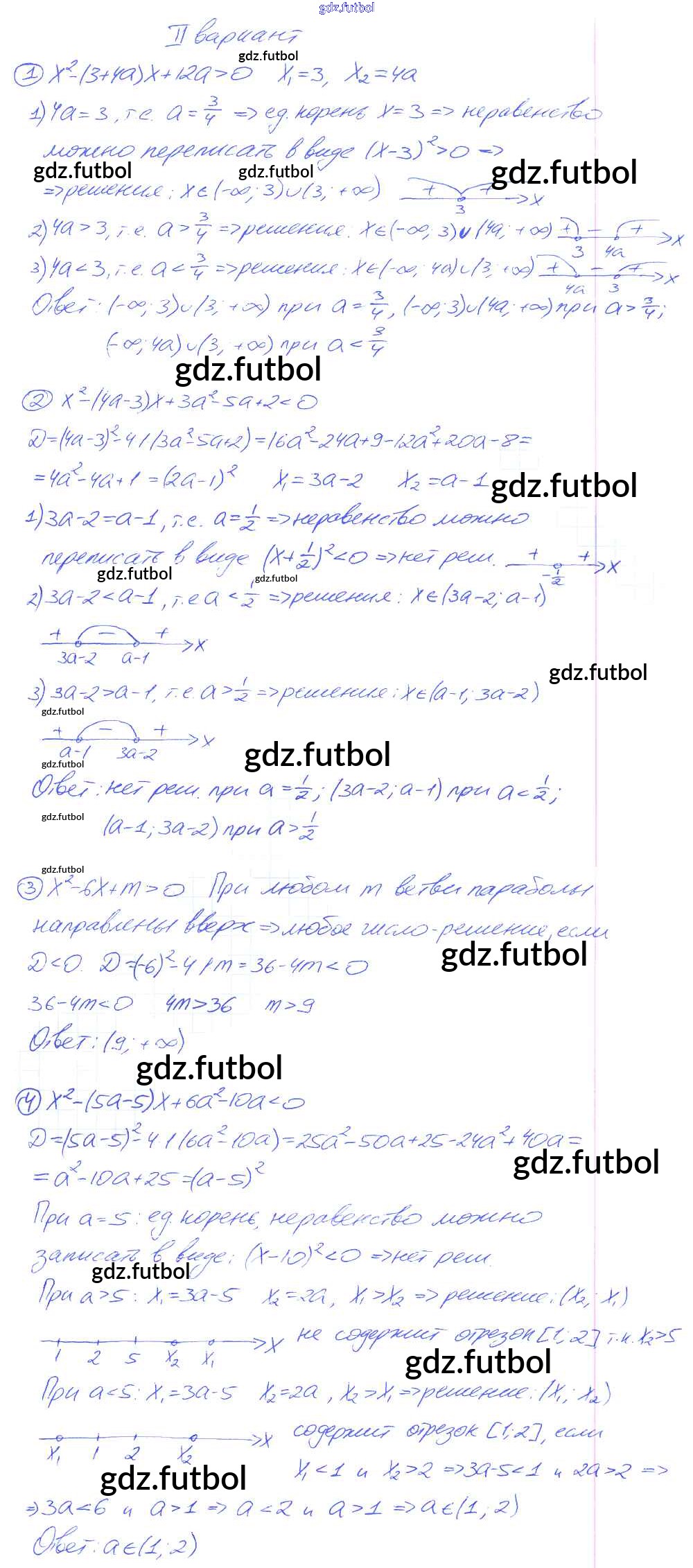Готовые домашние задания по Алгебре за 9 класс Потапов Дидактические материалы МГУ - школе 2010 ФГОС - СР №6. Неравенства второй степени с параметром вариант 2