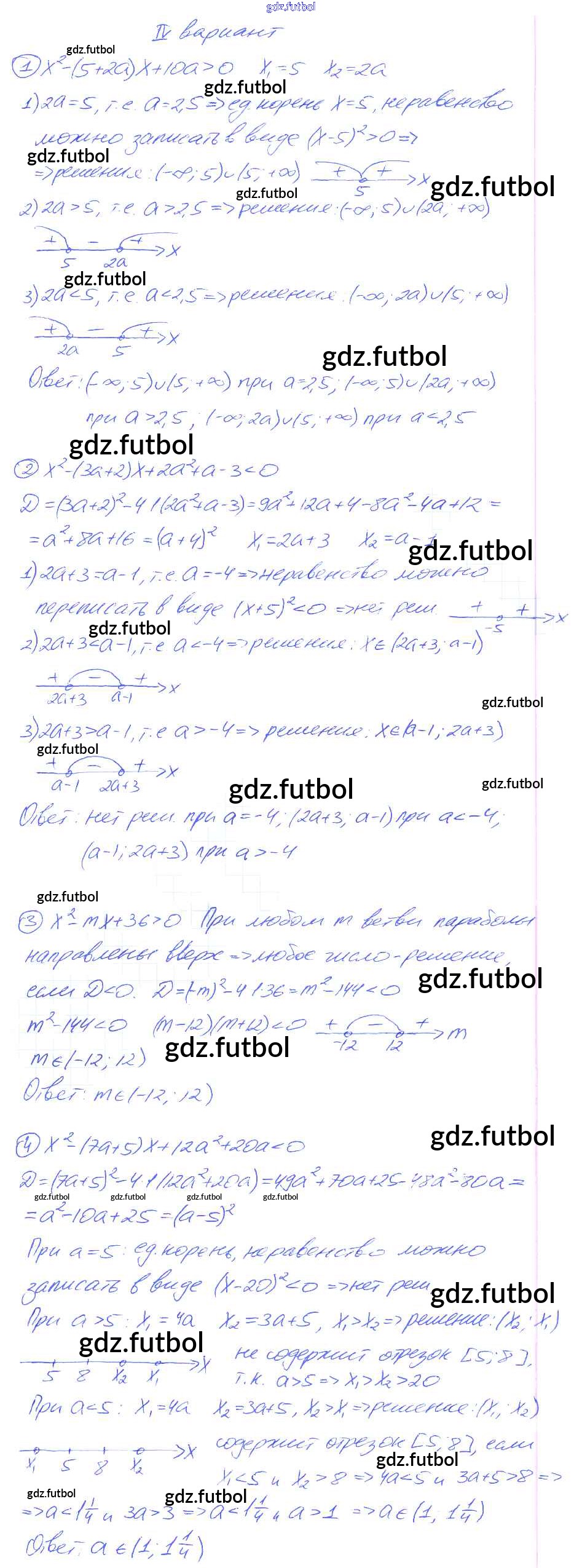Готовые домашние задания по Алгебре за 9 класс Потапов Дидактические материалы МГУ - школе 2010 ФГОС - СР №6. Неравенства второй степени с параметром вариант 4