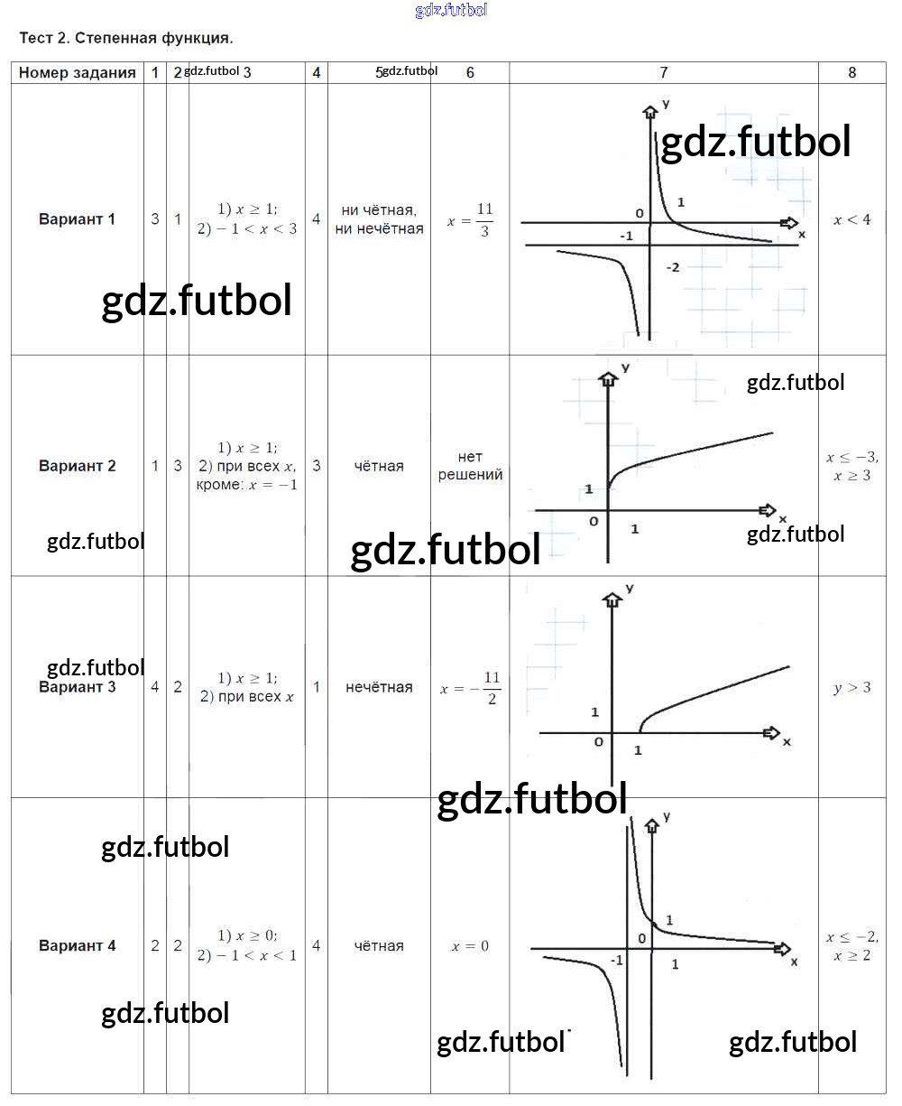 Готовые решения задач (ГДЗ) по Алгебре девятый класс Ткачева Тематические тесты 2014 ФГОС - Тесты Тест № 2. Степенная функция доступны для различных учебных материалов. У нас вы сможете найти авторские решения для всех пособий, предназначенных для школьников. Не секрет, что в настоящее время многие школьники прибегают к использованию готовых решебников, ведь они содержат подробные ответы для каждого упражнения, представленного в учебнике.