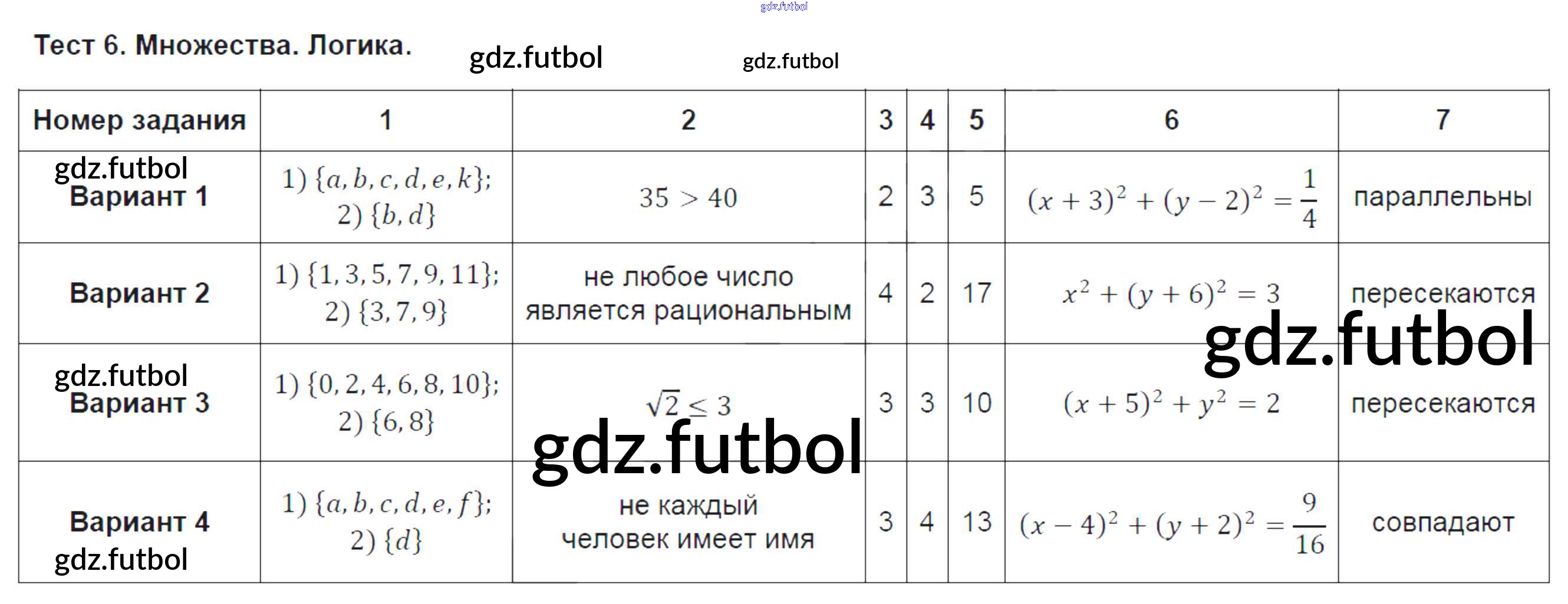 Готовые решения задач (ГДЗ) по Алгебре девятый класс Ткачева Тематические тесты 2014 ФГОС - Тесты Тест № 6. Множества. Логика доступны для различных учебных материалов. У нас вы сможете найти авторские решения для всех пособий, предназначенных для школьников. Не секрет, что в настоящее время многие школьники прибегают к использованию готовых решебников, ведь они содержат подробные ответы для каждого упражнения, представленного в учебнике.