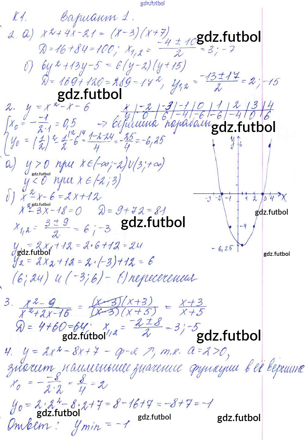 Готовые домашние задания по Алгебре за 9 класс Журавлев Контрольные и самостоятельные работы УМК 2016 ФГОС - К-1. Квадратичная функция Вариант №1