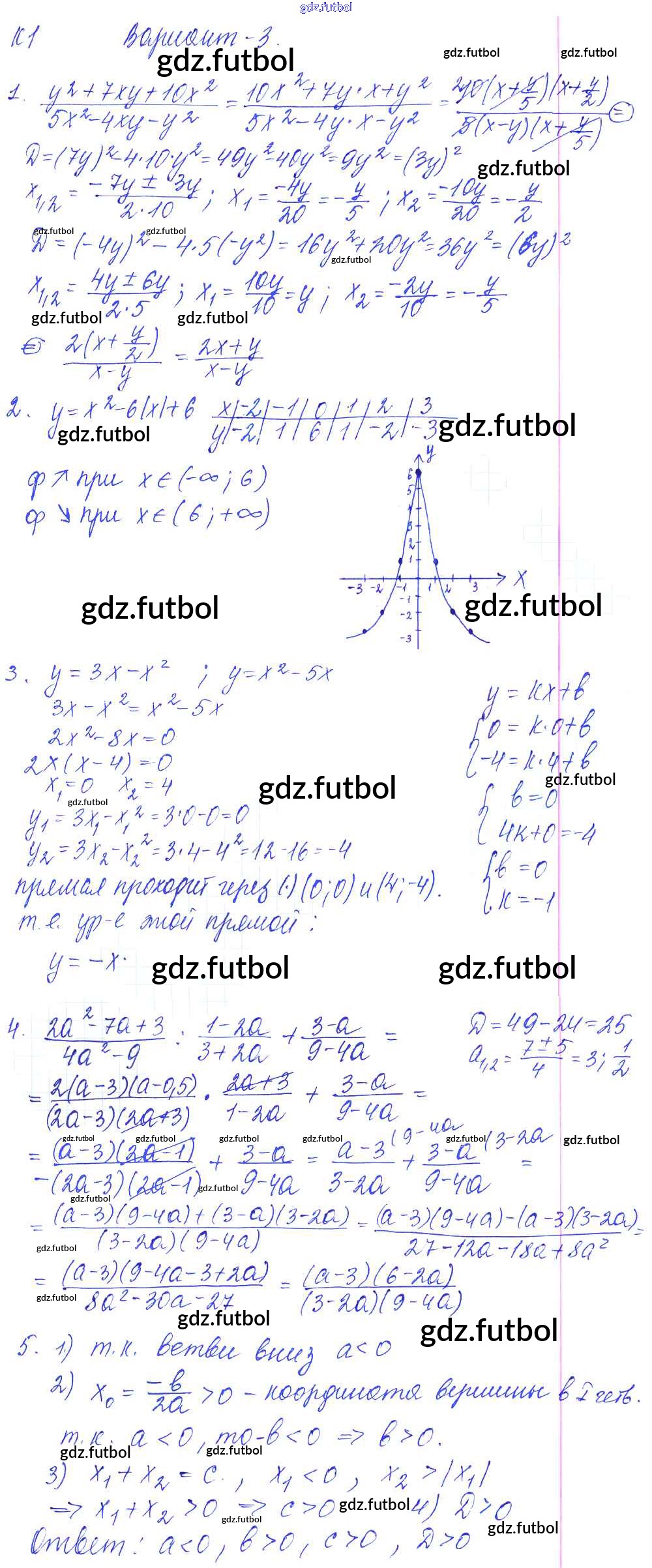 Готовые домашние задания по Алгебре за 9 класс Журавлев Контрольные и самостоятельные работы УМК 2016 ФГОС - К-1. Квадратичная функция Вариант №3
