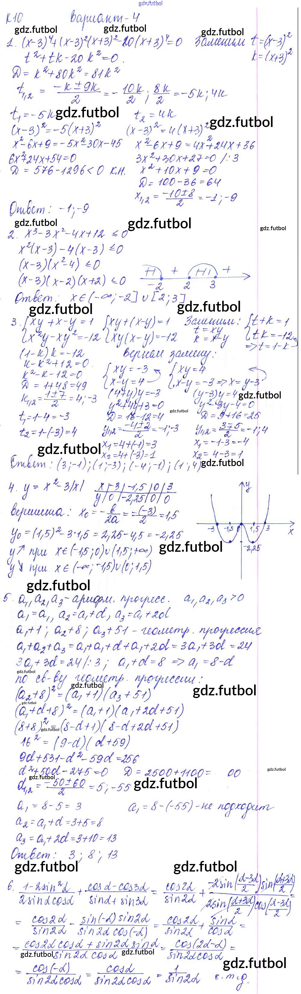 Готовые домашние задания по Алгебре за 9 класс Журавлев Контрольные и самостоятельные работы УМК 2016 ФГОС - К-10. Итоговая контрольная работа Вариант №4