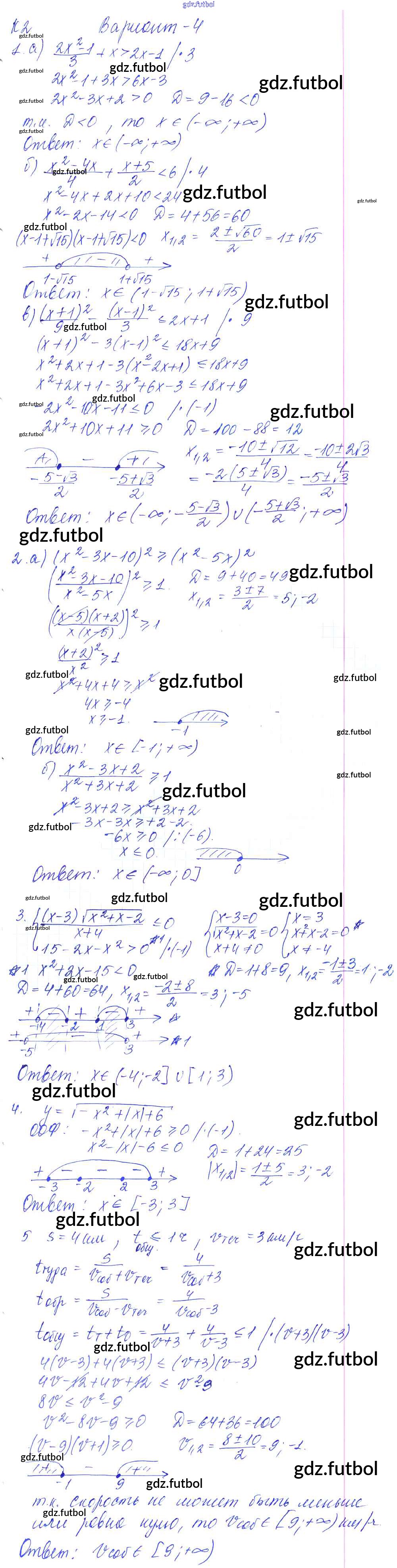 Готовые домашние задания по Алгебре за 9 класс Журавлев Контрольные и самостоятельные работы УМК 2016 ФГОС - К-2. Решение неравенств Вариант №4