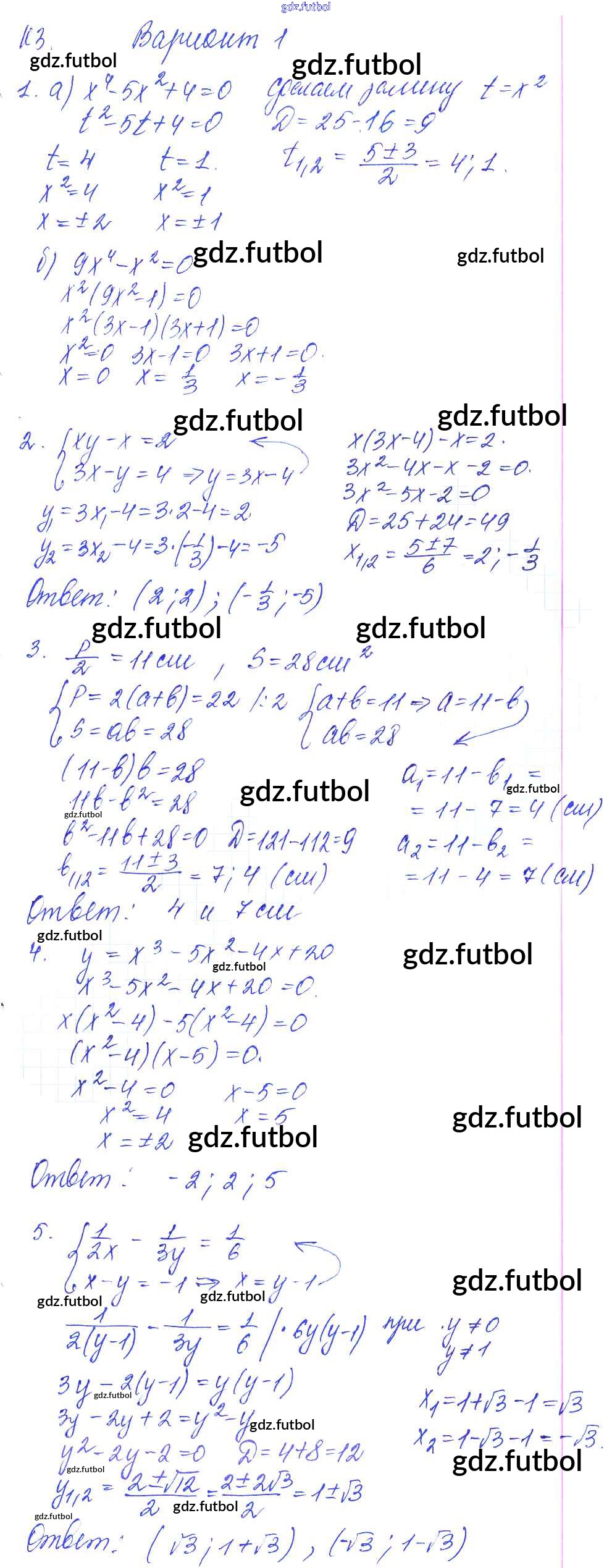 Готовые домашние задания по Алгебре за 9 класс Журавлев Контрольные и самостоятельные работы УМК 2016 ФГОС - К-3. Целые уравнения и системы уравнений Вариант №1