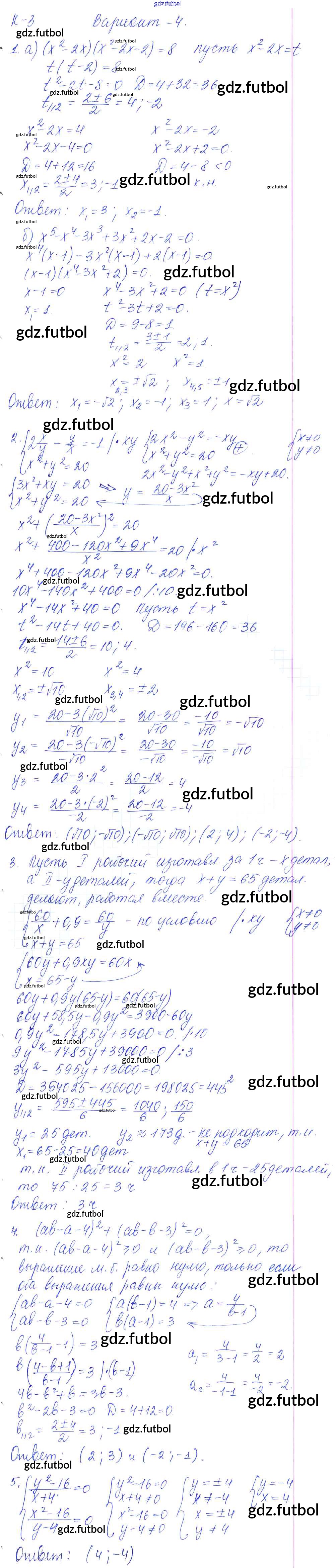 Готовые домашние задания по Алгебре за 9 класс Журавлев Контрольные и самостоятельные работы УМК 2016 ФГОС - К-3. Целые уравнения и системы уравнений Вариант №4