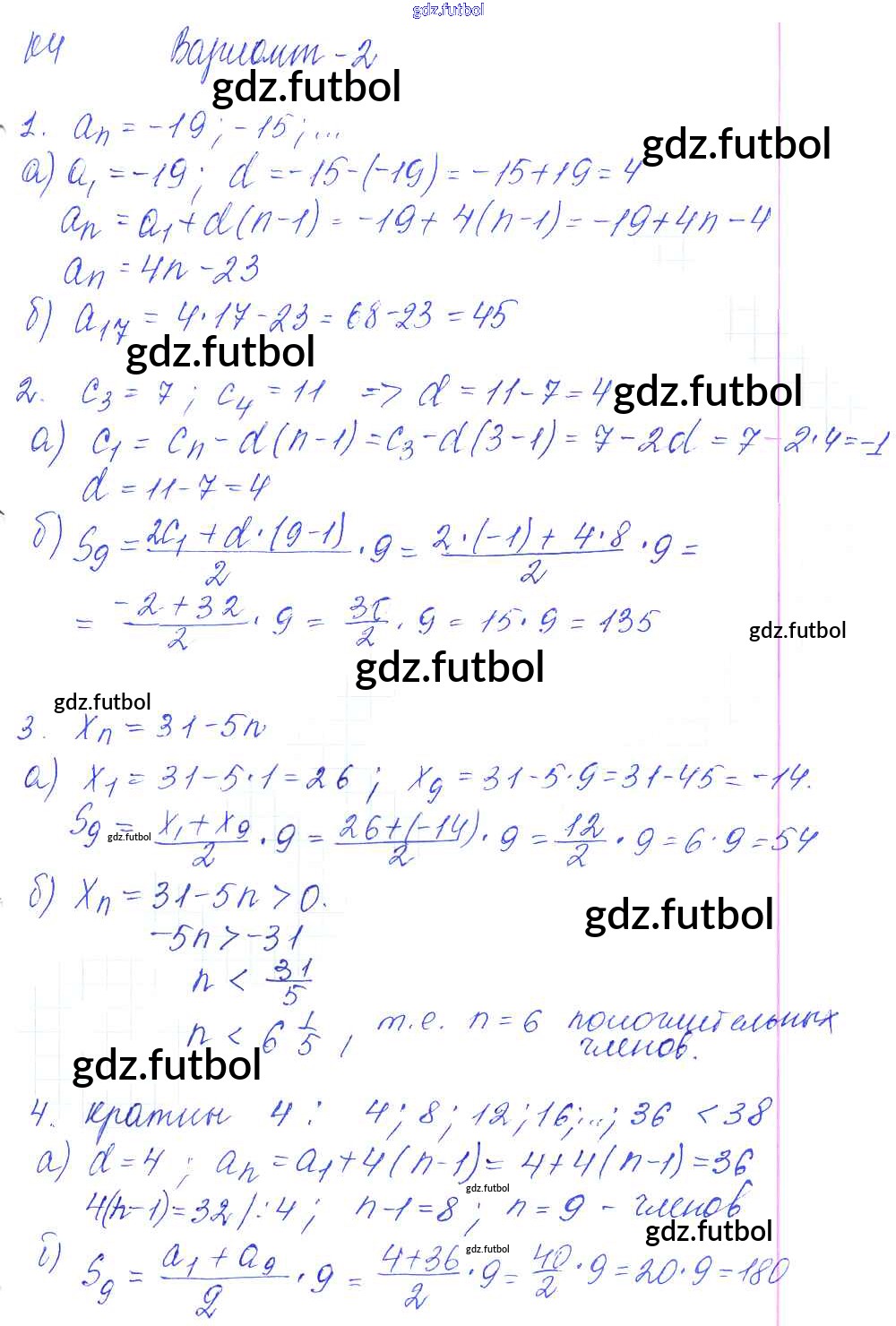 Готовые домашние задания по Алгебре за 9 класс Журавлев Контрольные и самостоятельные работы УМК 2016 ФГОС - К-4. Арифметическая прогрессия Вариант №2