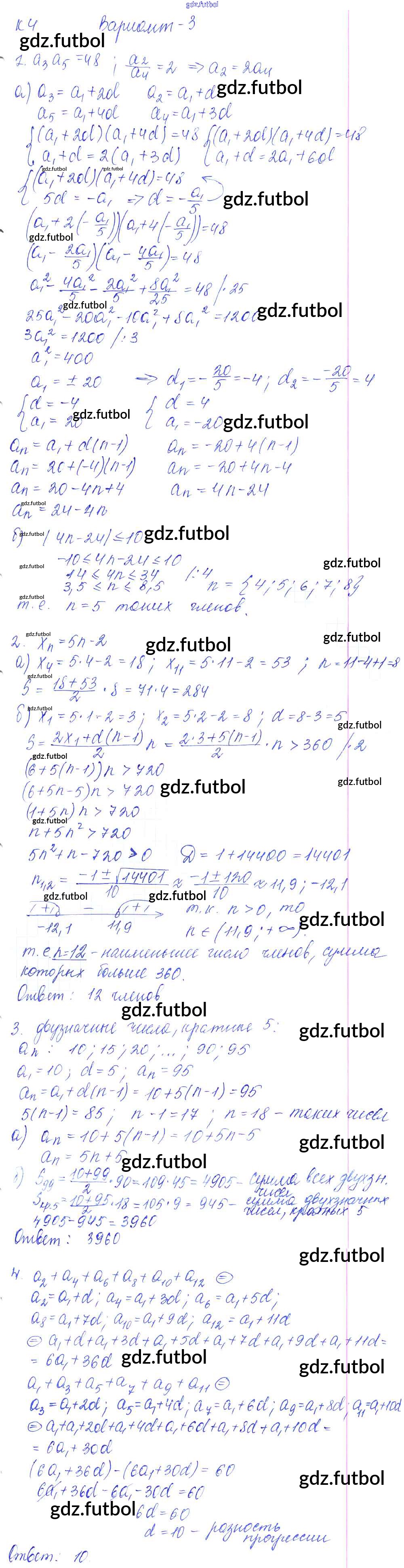 Готовые домашние задания по Алгебре за 9 класс Журавлев Контрольные и самостоятельные работы УМК 2016 ФГОС - К-4. Арифметическая прогрессия Вариант №3