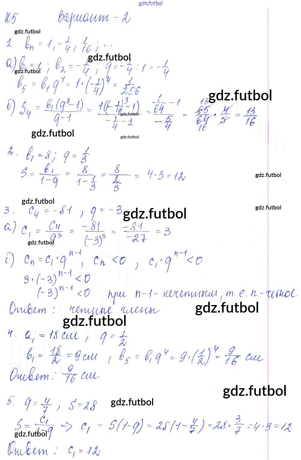 Готовые домашние задания по Алгебре за 9 класс Журавлев Контрольные и самостоятельные работы УМК 2016 ФГОС - К-5. Геометрическая прогрессия Вариант №2