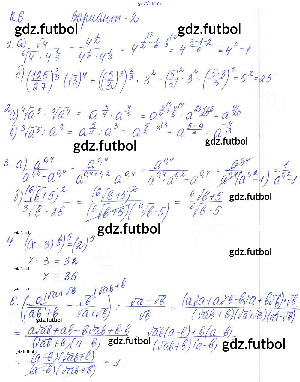 Готовые домашние задания по Алгебре за 9 класс Журавлев Контрольные и самостоятельные работы УМК 2016 ФГОС - К-6. Степень с рациональным показателем Вариант №2