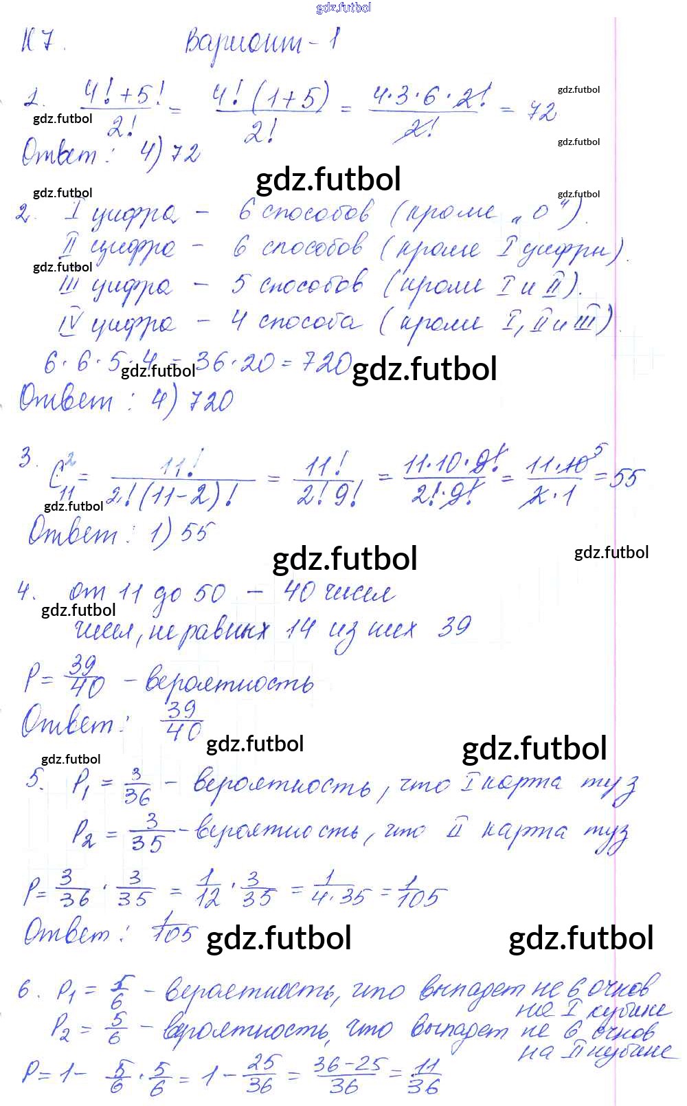 Готовые домашние задания по Алгебре за 9 класс Журавлев Контрольные и самостоятельные работы УМК 2016 ФГОС - К-7. Элементы комбинаторики и теории вероятностей Вариант №1