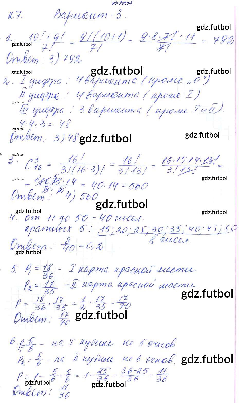 Готовые домашние задания по Алгебре за 9 класс Журавлев Контрольные и самостоятельные работы УМК 2016 ФГОС - К-7. Элементы комбинаторики и теории вероятностей Вариант №3