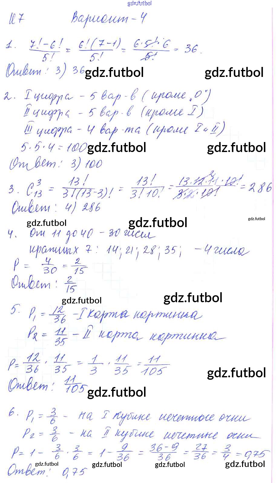 Готовые домашние задания по Алгебре за 9 класс Журавлев Контрольные и самостоятельные работы УМК 2016 ФГОС - К-7. Элементы комбинаторики и теории вероятностей Вариант №4