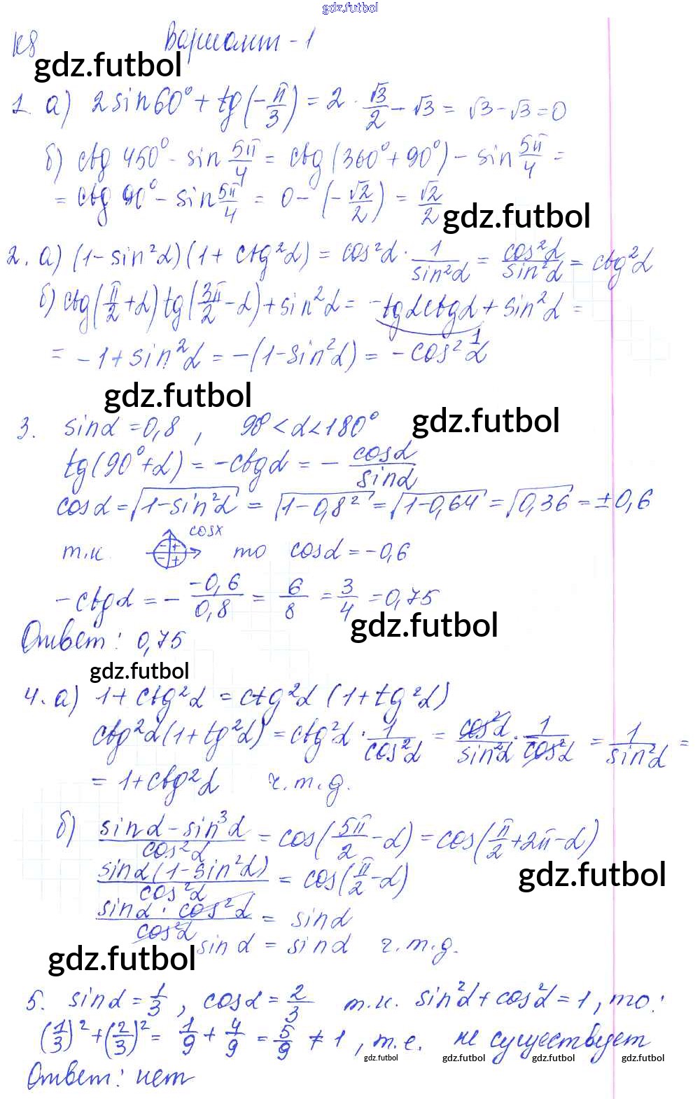 Готовые домашние задания по Алгебре за 9 класс Журавлев Контрольные и самостоятельные работы УМК 2016 ФГОС - К-8. Свойства тригонометрических функций. Тригонометрические тождества. Формулы приведения Вариант №1