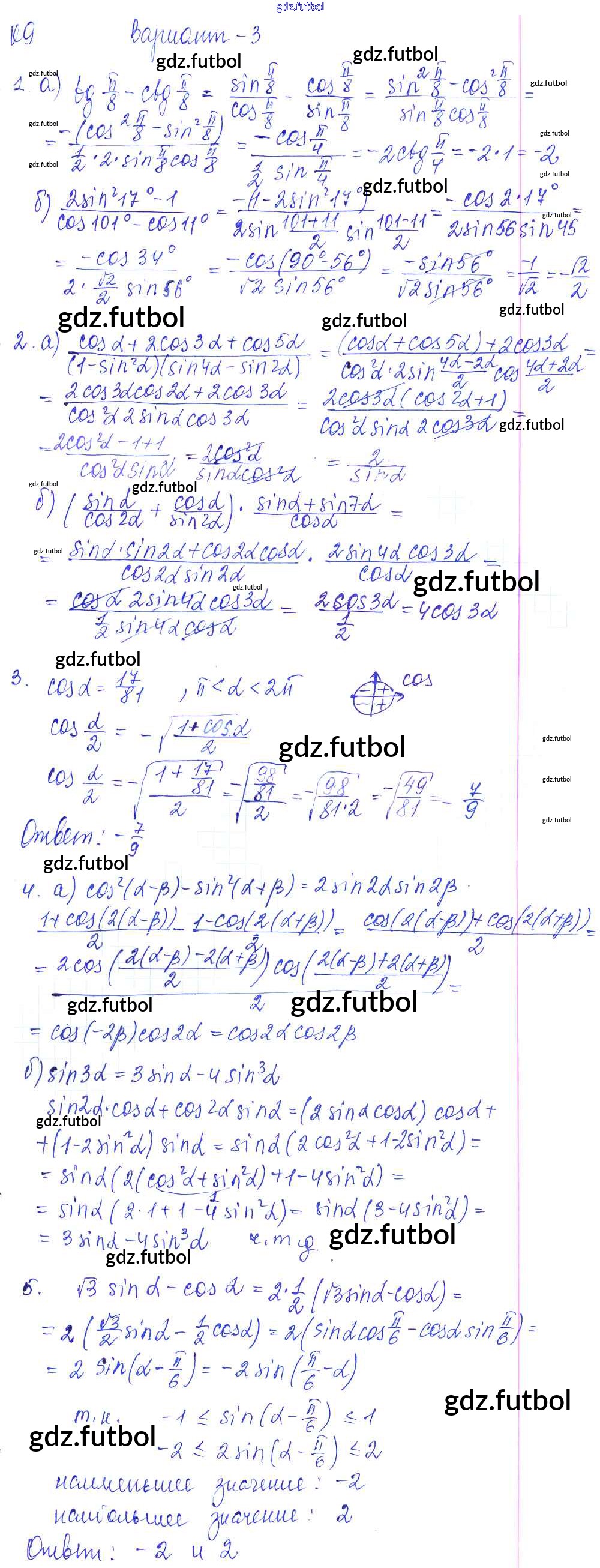 Готовые домашние задания по Алгебре за 9 класс Журавлев Контрольные и самостоятельные работы УМК 2016 ФГОС - К-9. Формулы сложения и их следствия Вариант №3
