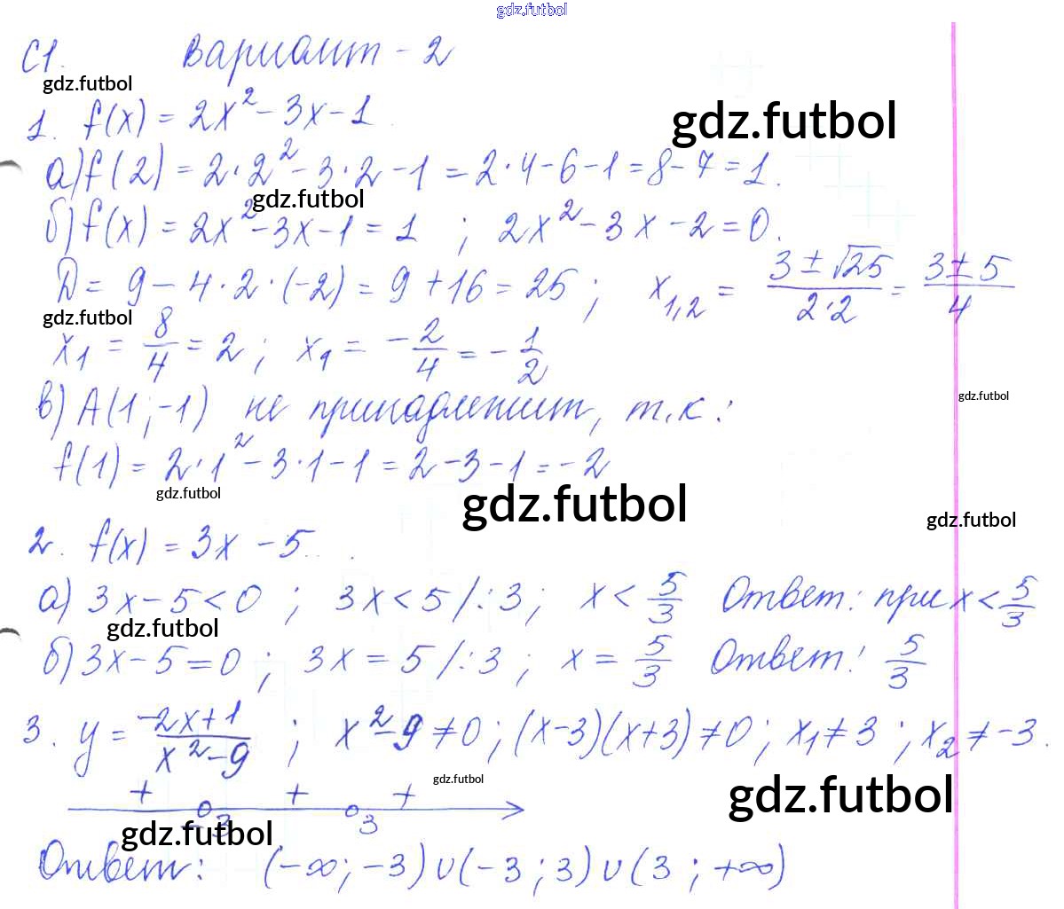 Готовые домашние задания по Алгебре за 9 класс Журавлев Контрольные и самостоятельные работы УМК 2016 ФГОС - С-1. Функции и их свойства Вариант №2