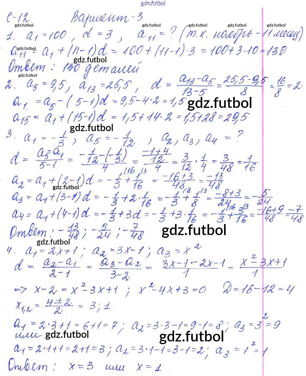 Готовые домашние задания по Алгебре за 9 класс Журавлев Контрольные и самостоятельные работы УМК 2016 ФГОС - С-12. Арифметическая прогрессия Вариант №3