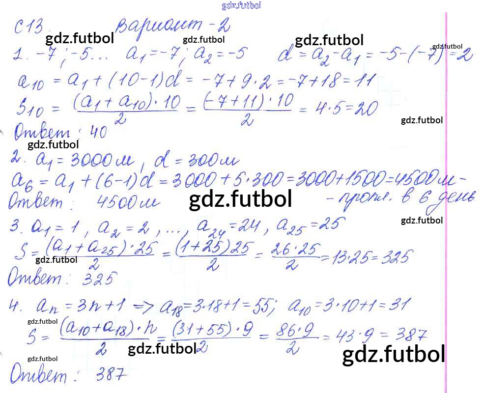 Готовые домашние задания по Алгебре за 9 класс Журавлев Контрольные и самостоятельные работы УМК 2016 ФГОС - С-13. Формула суммы n первых членов арифметической прогрессии Вариант №2