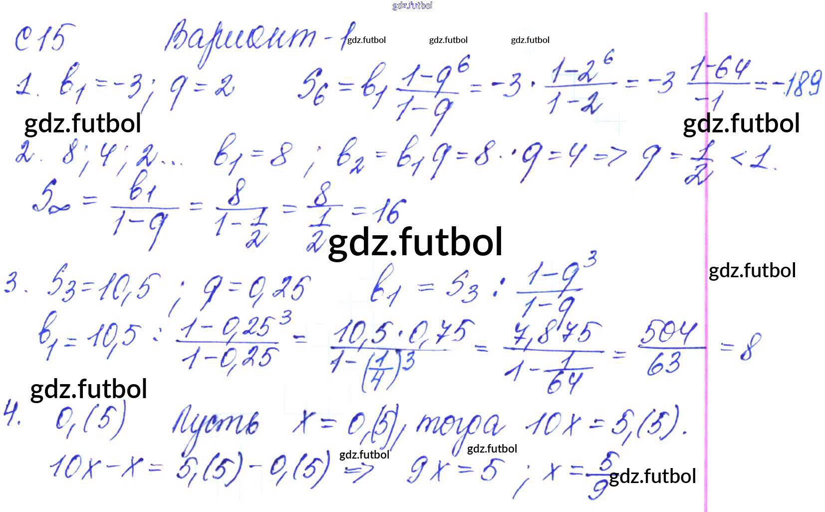 Готовые домашние задания по Алгебре за 9 класс Журавлев Контрольные и самостоятельные работы УМК 2016 ФГОС - С-15. Формула суммы первых n членов геометрической прогрессии Вариант №1