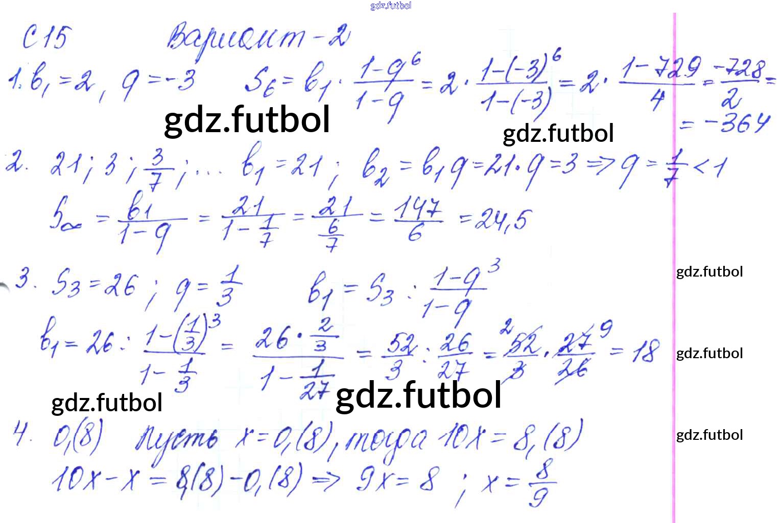 Готовые домашние задания по Алгебре за 9 класс Журавлев Контрольные и самостоятельные работы УМК 2016 ФГОС - С-15. Формула суммы первых n членов геометрической прогрессии Вариант №2
