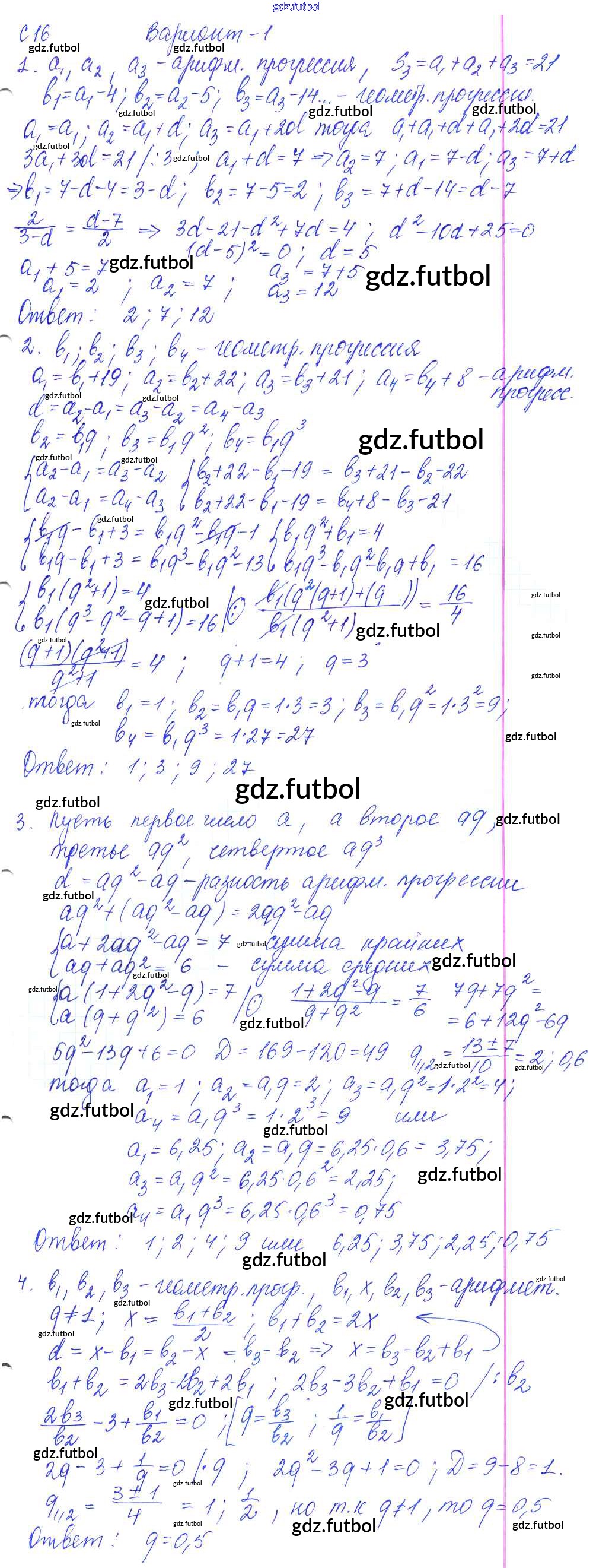 Готовые домашние задания по Алгебре за 9 класс Журавлев Контрольные и самостоятельные работы УМК 2016 ФГОС - С-16. Комбинированные задачи на прогрессии Вариант №1