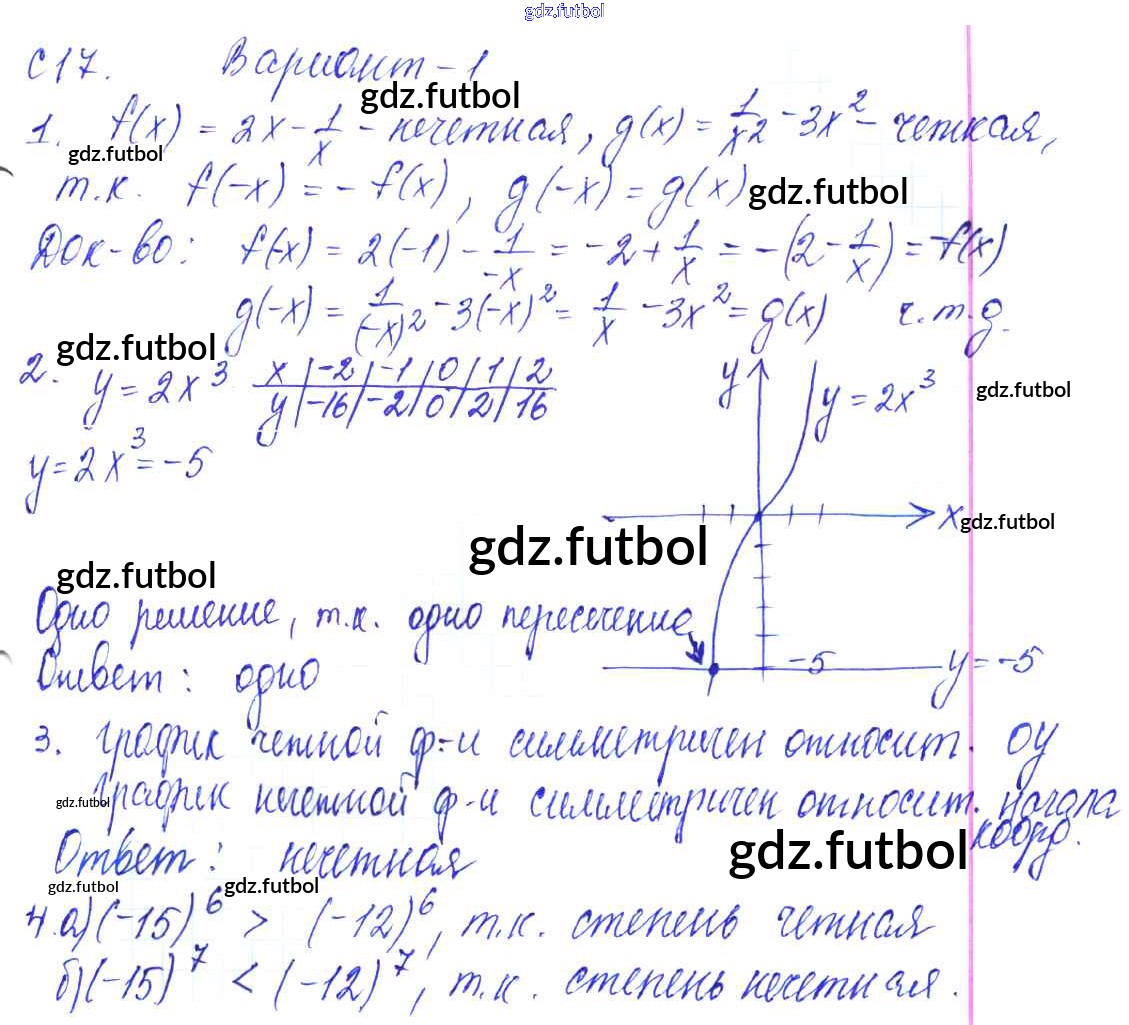 Готовые домашние задания по Алгебре за 9 класс Журавлев Контрольные и самостоятельные работы УМК 2016 ФГОС - С-17. Четные и нечетные функции. Функция у = хn Вариант №1