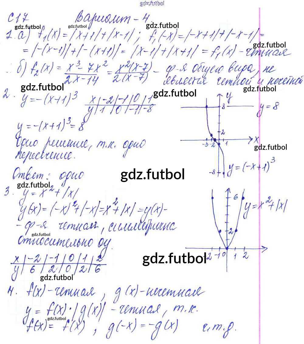 Готовые домашние задания по Алгебре за 9 класс Журавлев Контрольные и самостоятельные работы УМК 2016 ФГОС - С-17. Четные и нечетные функции. Функция у = хn Вариант №4