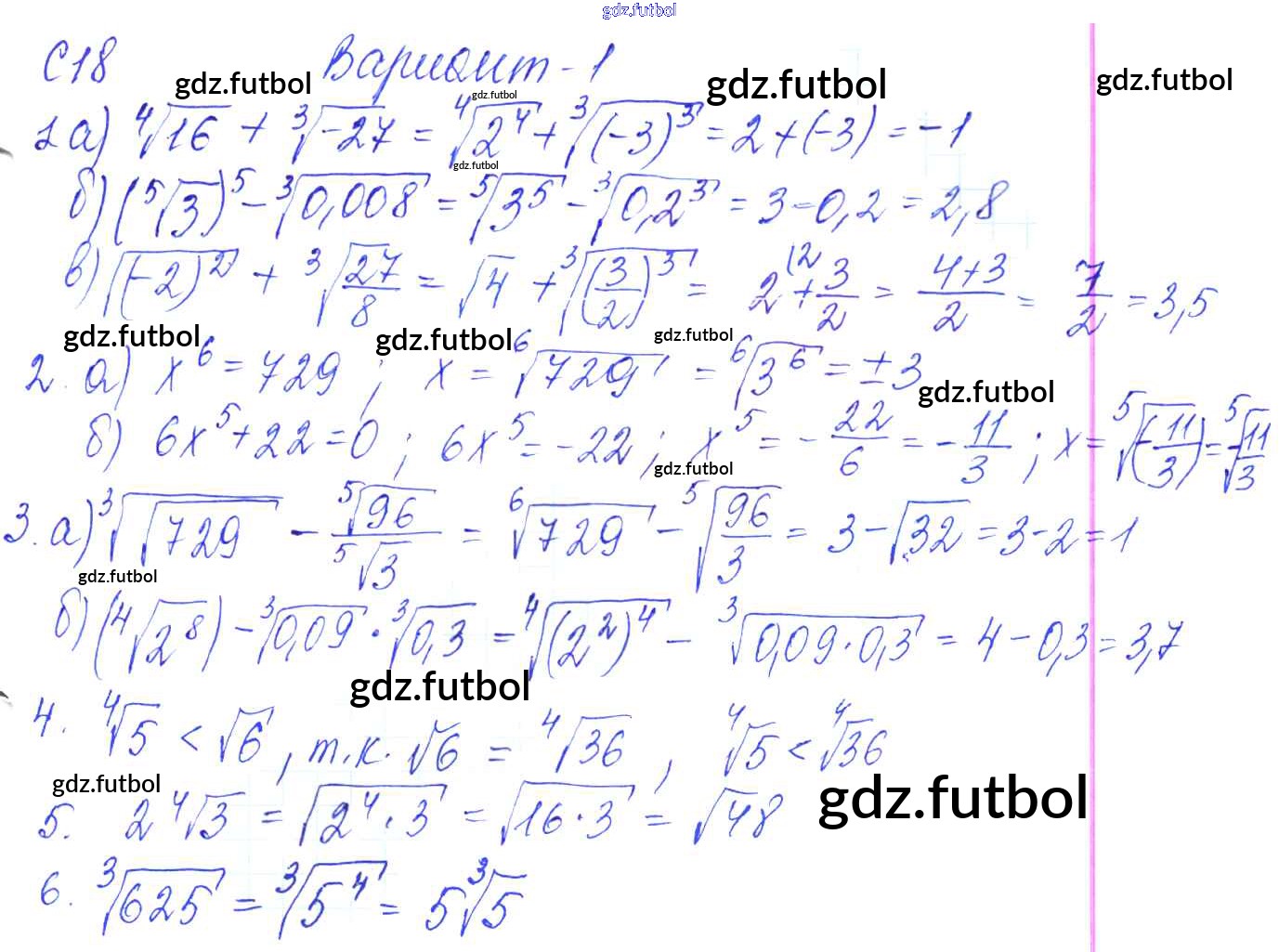 Готовые домашние задания по Алгебре за 9 класс Журавлев Контрольные и самостоятельные работы УМК 2016 ФГОС - С-18. Корень n-й степени и его свойства Вариант №1