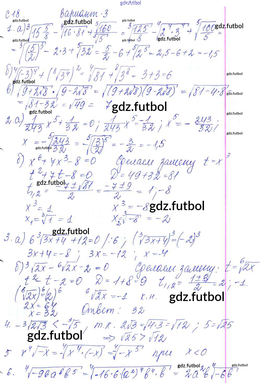 Готовые домашние задания по Алгебре за 9 класс Журавлев Контрольные и самостоятельные работы УМК 2016 ФГОС - С-18. Корень n-й степени и его свойства Вариант №3