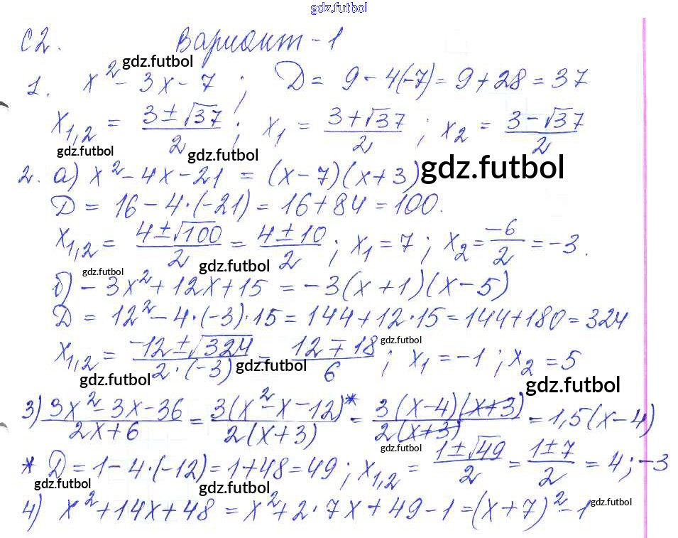 Готовые домашние задания по Алгебре за 9 класс Журавлев Контрольные и самостоятельные работы УМК 2016 ФГОС - С-2. Квадратный трехчлен Вариант №1