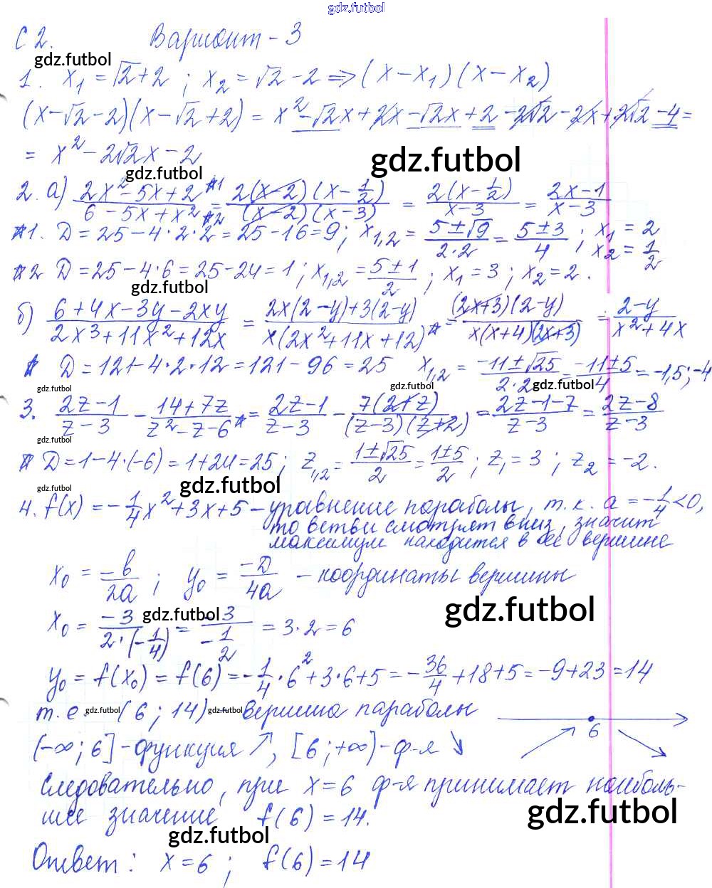 Готовые домашние задания по Алгебре за 9 класс Журавлев Контрольные и самостоятельные работы УМК 2016 ФГОС - С-2. Квадратный трехчлен Вариант №3