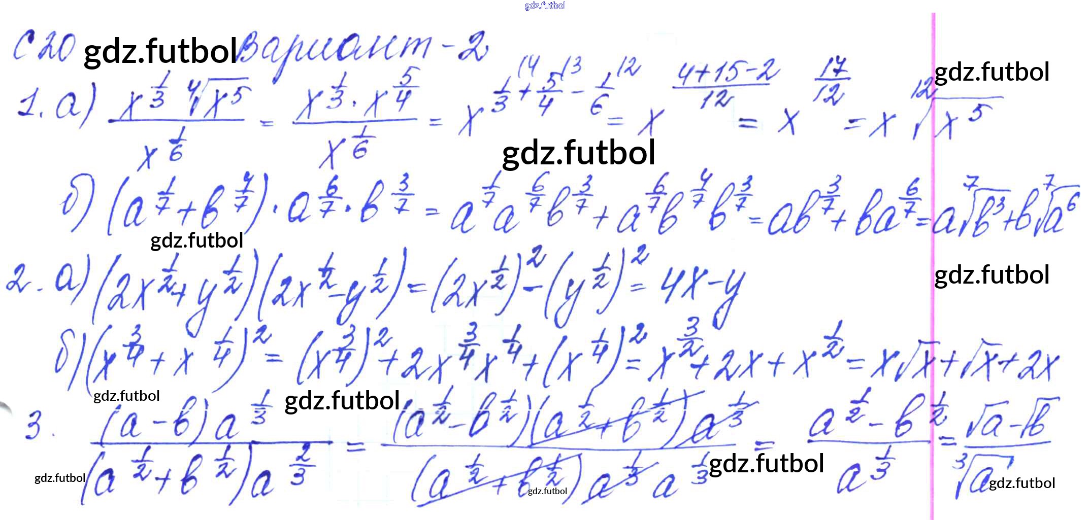 Готовые домашние задания по Алгебре за 9 класс Журавлев Контрольные и самостоятельные работы УМК 2016 ФГОС - С-20. Преобразование степенных выражений с рациональными показателями Вариант №2