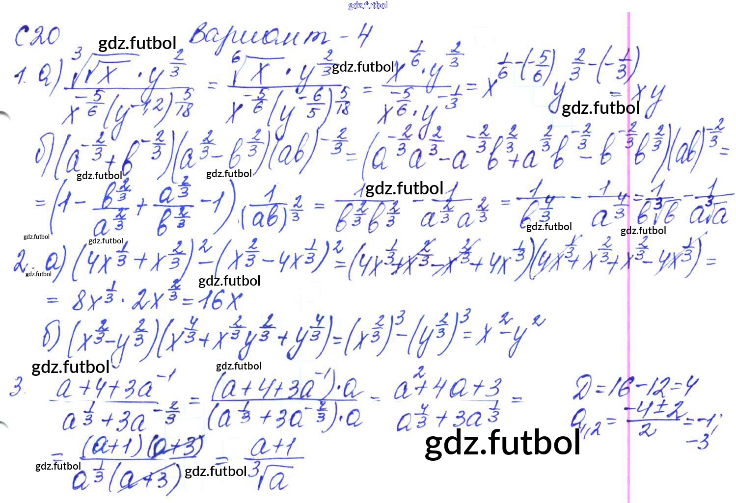 Готовые домашние задания по Алгебре за 9 класс Журавлев Контрольные и самостоятельные работы УМК 2016 ФГОС - С-20. Преобразование степенных выражений с рациональными показателями Вариант №4