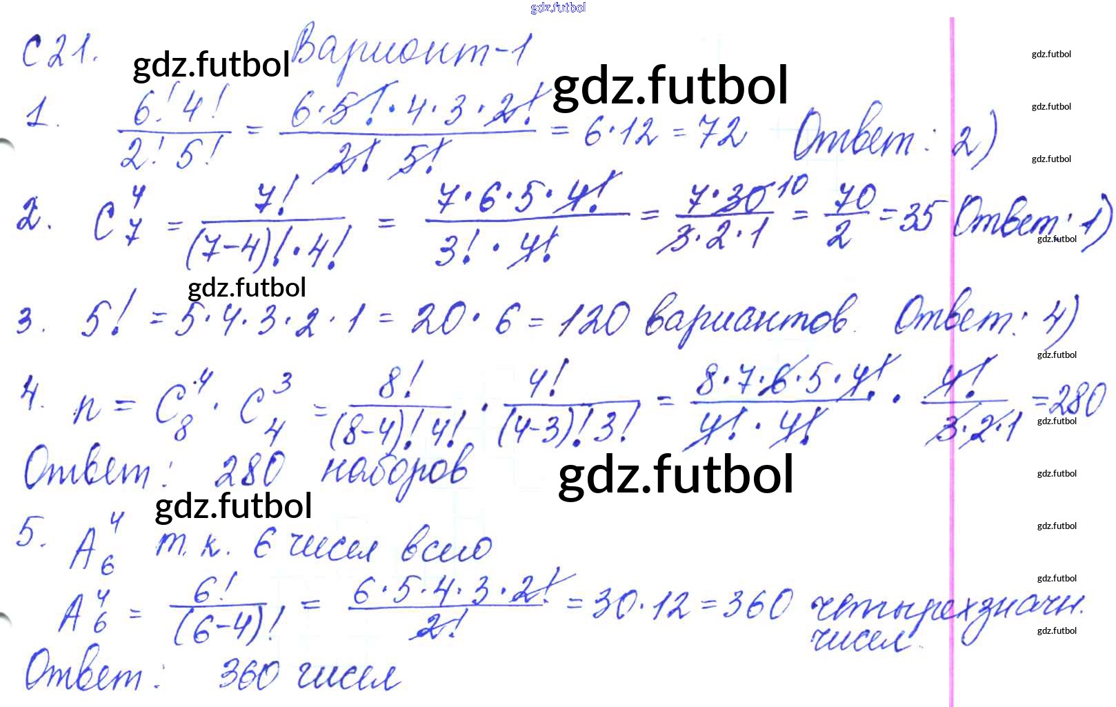 Готовые домашние задания по Алгебре за 9 класс Журавлев Контрольные и самостоятельные работы УМК 2016 ФГОС - С-21. Элементы комбинаторики Вариант №1