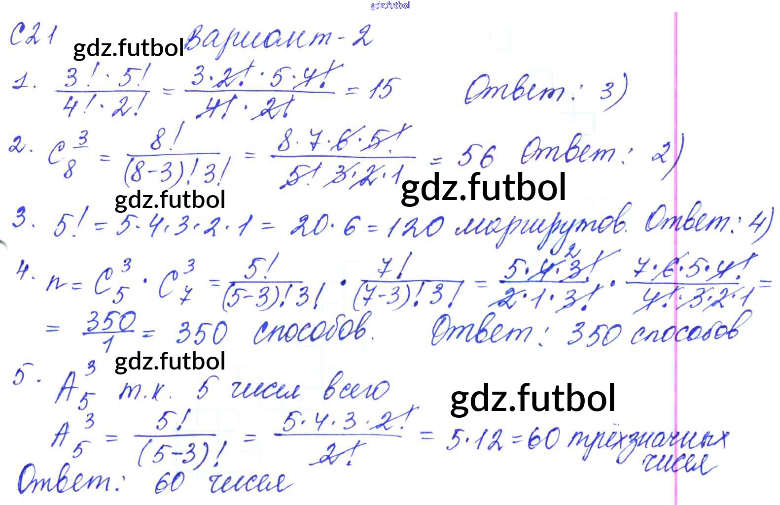Готовые домашние задания по Алгебре за 9 класс Журавлев Контрольные и самостоятельные работы УМК 2016 ФГОС - С-21. Элементы комбинаторики Вариант №2