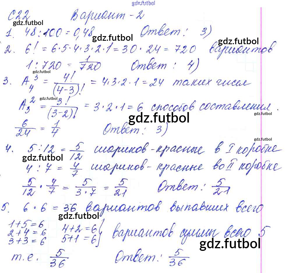 Готовые домашние задания по Алгебре за 9 класс Журавлев Контрольные и самостоятельные работы УМК 2016 ФГОС - С-22. Начальные сведения из теории вероятностей Вариант №2