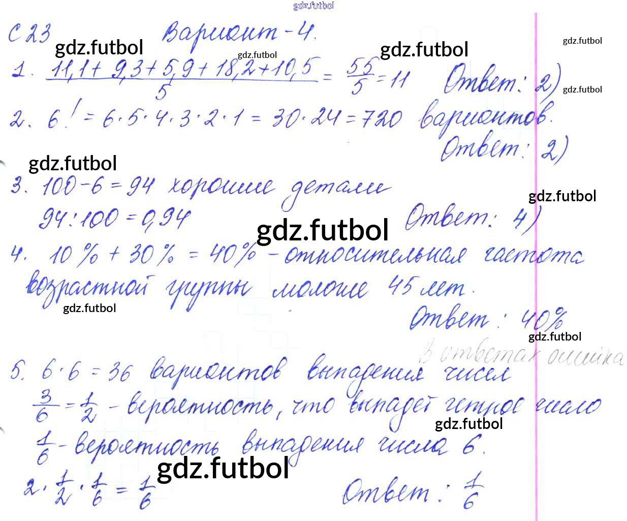 Готовые домашние задания по Алгебре за 9 класс Журавлев Контрольные и самостоятельные работы УМК 2016 ФГОС - С-23. Элементы статистики и теории вероятностей Вариант №4