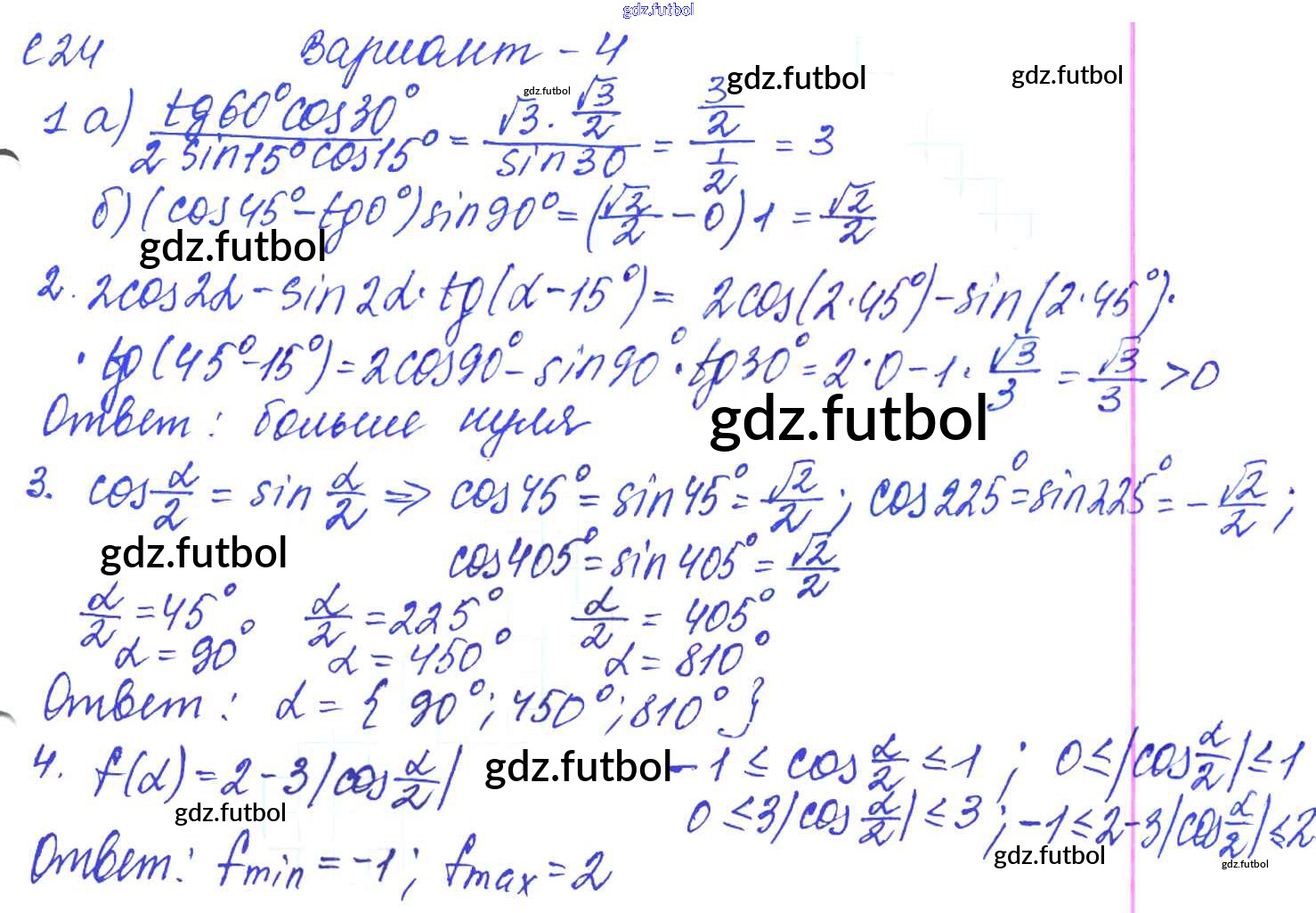 Готовые домашние задания по Алгебре за 9 класс Журавлев Контрольные и самостоятельные работы УМК 2016 ФГОС - С-24. Определение тригонометрических функций Вариант №4