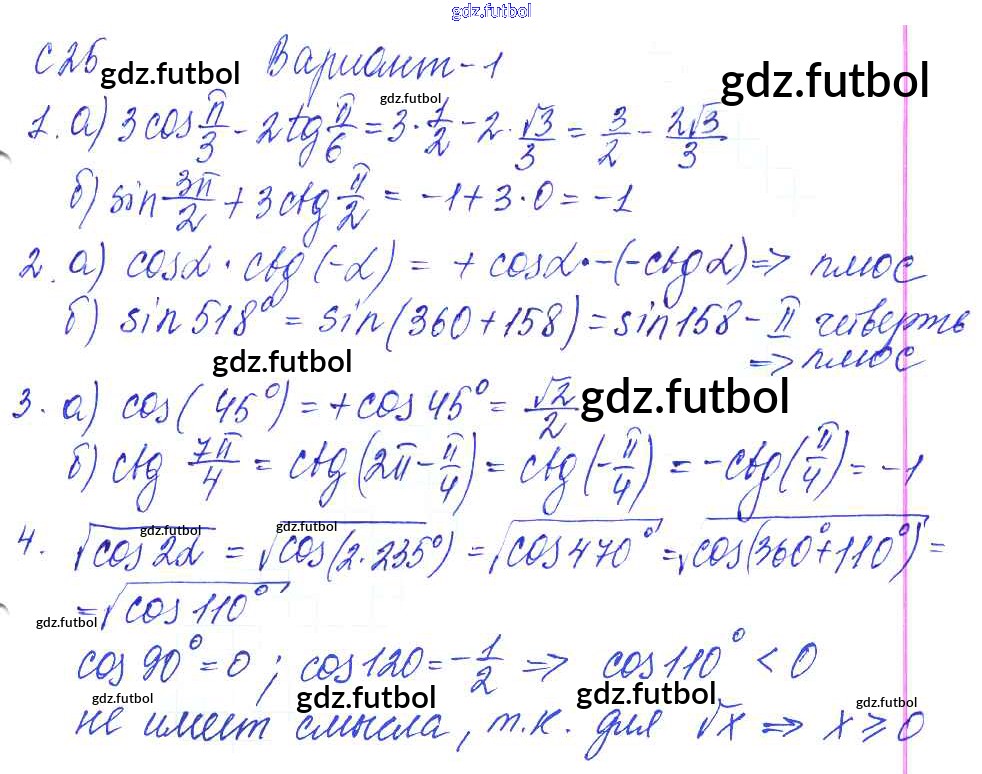 Готовые домашние задания по Алгебре за 9 класс Журавлев Контрольные и самостоятельные работы УМК 2016 ФГОС - С-25. Свойства тригонометрических функций Вариант №1